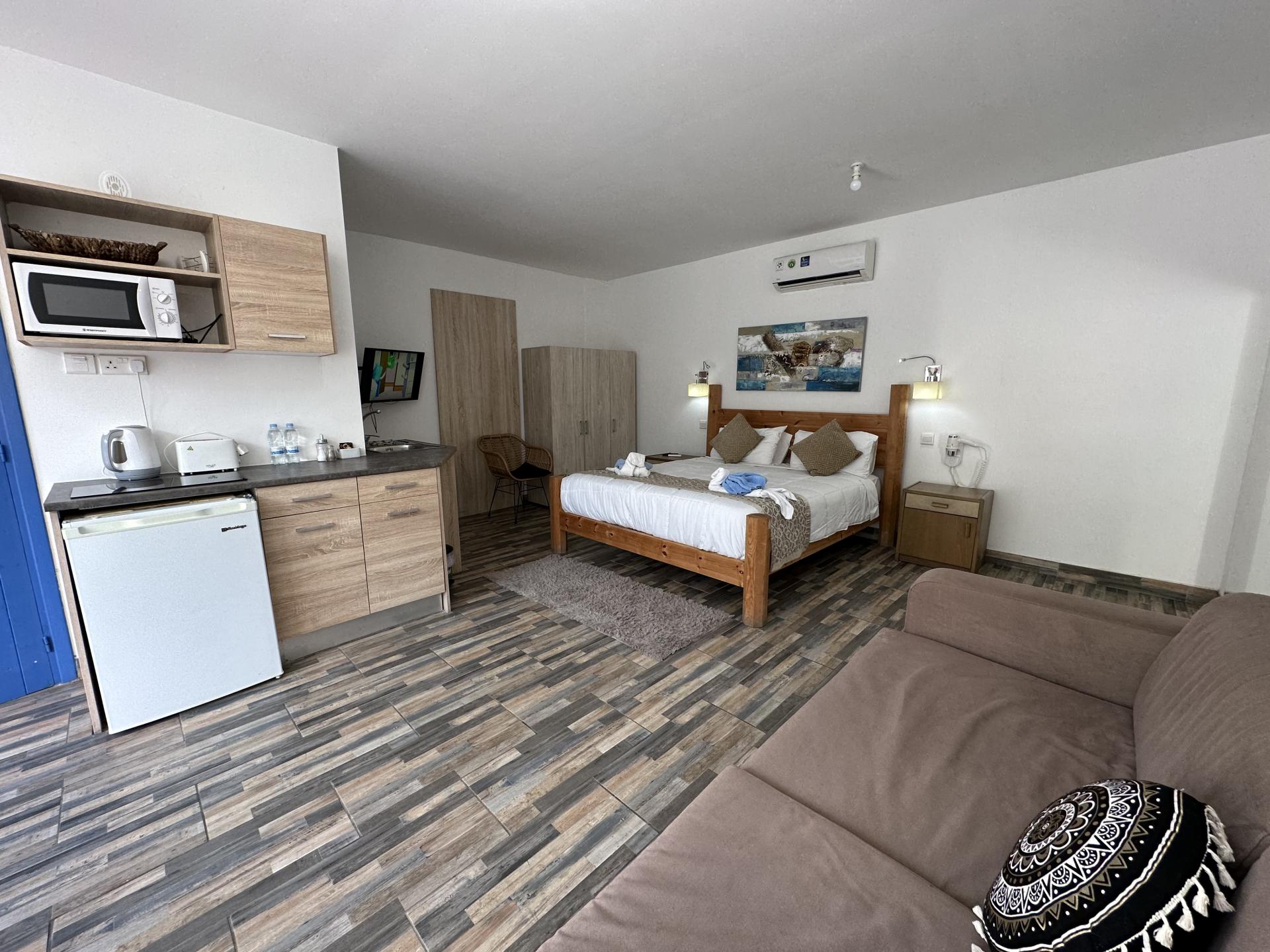 Relax in Lithos Studio 005, 1 bedroom, (2 adults) with 1 En-suite with shower, Ground Floor (1 x Double Bed).